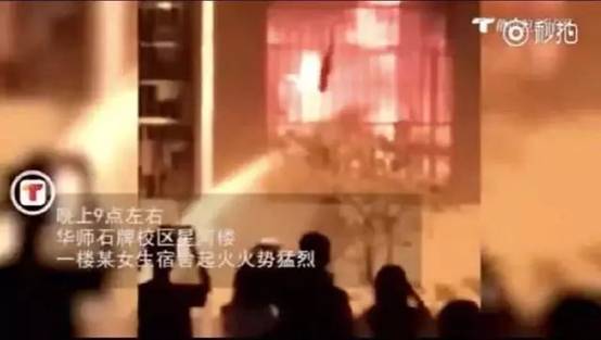 2018年4月10日21时许,华南师范大学石牌校区星河楼一楼某女生宿舍起火,火势猛烈,从阳台烧到大门。消防人员迅速到场,及时将火扑灭。好在起火时,该宿舍内无人。据了解,起火原因是行政学院学生在宿舍内使用电磁炉煮东西,而且未关闭电源就离开了宿舍,引发了这起火灾。火灾未造成人员伤亡。