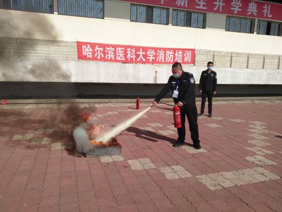防火科长崔永励通过保卫处干警的示范,讲解、教授同学们如何正确的使用灭火器,使学生们初步了解了灭火器的使用方法和操作注意事项。