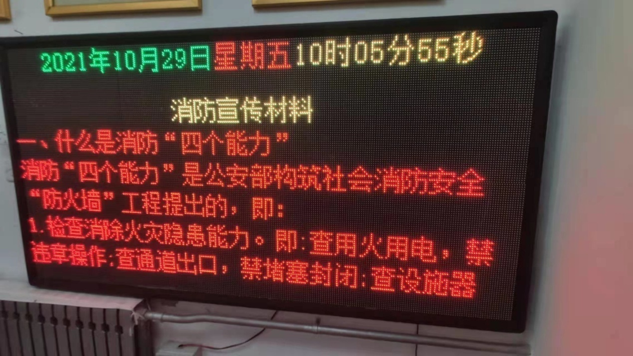将消防知识提供给学生公寓、图书馆等有电子屏幕的单位,要求各单位在11.9前后,在电子屏幕上滚动播放进行宣传。