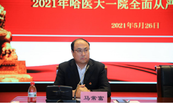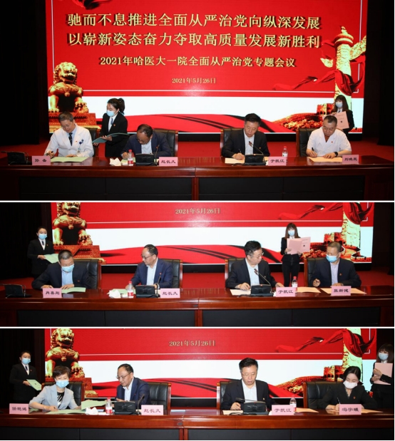 党委书记赵长久在讲话中指出,2020年医院党委按照党中央、省委和学校党委决策部署和工作要求,始终坚持以习近平新时代中国特色社会主义思想为指导,深入贯彻党的十九大和十九届二中、三中、四中、五中全会精神,自觉把主体责任抓在手上、扛在肩上、落实在行动上,在高举思想旗帜、加强党的领导、强化政治监督、狠抓作风建设、净化政治生态等方面取得了积极成效。赵长久结合医院实际情况,对国家九部委印发的《2021年纠正医药购销领域和医疗服务中不正之风工作要点》进行了系统解读,并对今年全面从严治党重点工作任务进行部署。赵长久强调,2021年是中国共产党建党100周年,也是十四五规划的开局之年,所有工作都要围绕开好局、起好步来展开。要从严抓好政治建设,切实将“两个维护”落实落细;从严抓好思想建设,以党史学习教育推动党的创新理论入脑入心,贯彻落实“学党史、悟思想、办实事、开新局”的总要求;从严抓好组织建设,将基层组织和干部队伍建好建强,带动职工群众学习党史、新中国史、改革开放史、社会主义发展史,开展好庆祝建党100周年系列活动;从严抓好党风廉政建设,营造风清气正的政治生态,以崭新姿态奋力夺取高质量发展新胜利,以实际行动和优异成绩向建党一百周年献礼。