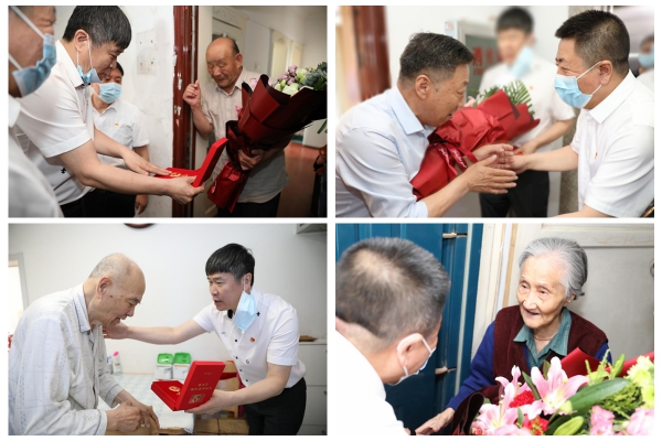 在老党员们的家中,院领导亲切询问他们的生活和身体情况,对其为党和国家所做的贡献表示感谢。曲国蕃为他们送上鲜花,赵长宏为老党员颁发“光荣在党50年”纪念章,嘱咐他们平日里保重身体,有困难及时向组织反映。慰问中,老党员孙殿福激动地说:“一直以来,院党委都非常关心我,感谢医院对我在各个方面的关怀和帮助。”在92岁的老党员韩希贤家中,大家详细了解了她的家庭生活和健康状况,她激动地说:“虽然我现在年龄大了,但是我也时刻关心医院的发展,我们医院跻身全国肿瘤医院十强,让我们这些老员工非常高兴。”