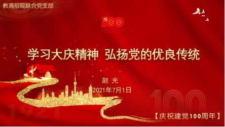 在中国共产党成立100周年之际,教高招现联合党支部按照学校机关党委的部署,积极制定活动方案,以饱满的热情开展庆祝建党100周年系列活动。
