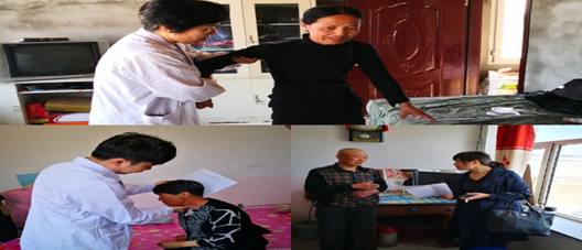 与此同时,在驻村工作队和村干部的带领下,义诊团成员走进贫困户家中。校民进主委、二院神经内科主任闫晓波教授,民进成员、二院心内科栾颖主任以及无党派人士、附属肿瘤医院王国辉给患病村民进行查体,并详细询问村民的就医、用药等情况,为家属做好日常护理和预防并发症进行专业指导,并建立健康档案。