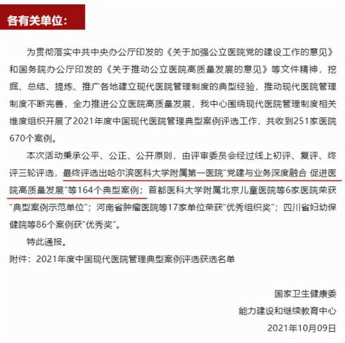 据了解,该评选是行业领域内权威性最高、质量度最优、影响力最大的管理评选活动。入选案例将进入现代医院管理培训案例库,推动实现行业治理和科学发展,助力健康中国建设。