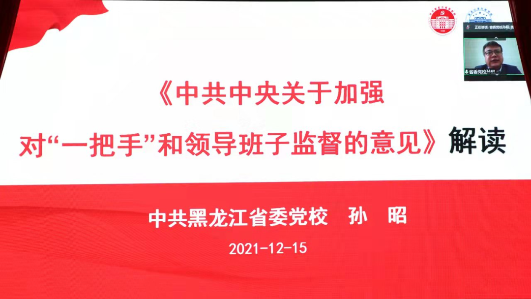 本次培训邀请中共黑龙江省委党校(黑龙江省行政学院)领导科学教研部主任孙昭教授作题为“《中共中央关于加强对“一把手”和领导班子监督的意见 》解读”的专题辅导。报告中,孙昭教授从《意见》出台的重大意义、《意见》规定的主要内容和《意见》贯彻的基本思路三个方面对《意见》内容进行了深入讲解。整个报告内容丰富、解读到位,既有理论高度又有思想深度,对监督中可能存在的问题,把握准确,讲得透彻,对于做好“一把手”和领导班子监督工作具有重要的指导意义。