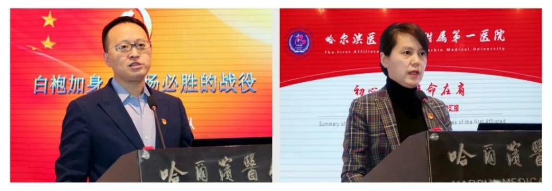 附属二院重症医学科党支部书记王洪亮、附属一院神经内科二病房护士长杨红艳作报告