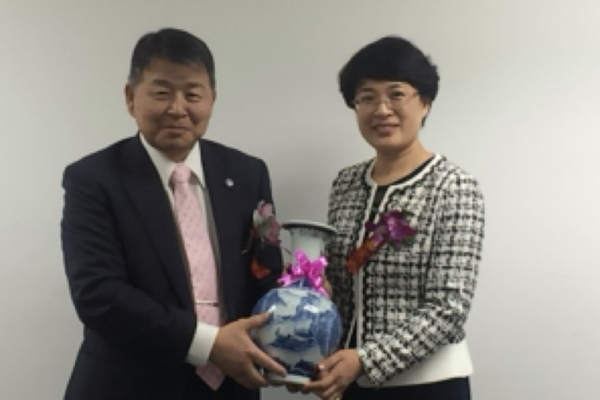杨平主席与金泽大学校长山崎光悦先生进行了亲切会谈。杨主席代表学校向金泽大学北京事务所开幕表示祝贺并转达了杨宝峰校长的祝贺信。