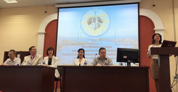 应俄罗斯太平洋国立医科大学邀请,7月6日-10日,ac米兰官网中文网站公共卫生学院副院长杨艳杰教授,公共卫生学院医学心理学教研室杨秀贤副教授、姜世香副教授、乔正学副教授、赵尔樱博士,大庆校区曹建琴副教授、关庆副教授、李阳博士等8位代表学校访问了俄罗斯太平洋国立医科大学,并参加了在俄罗斯举办的第七届国际科学实践会议“基于极端和危机状态下人类的心理行为研究”心理学高峰论坛,国际交流处崔嵬随同访问。此次出访得到了俄罗斯太平洋国立医科大学的高度重视,副校长Kuznetsov Vladimir亲切会见了杨艳杰教授及代表团成员,并全程陪同,期间还就共同关心的全球公共卫生问题特别是精神心理问题进行了广泛交流。