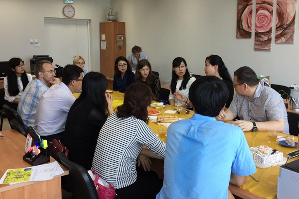 7月9日俄方心理系主任Kadurov Roman准备了丰富的茶点盛情邀请ac米兰代表团与其心理系教师代表10余人进行深入交流,座谈长达三个小时。座谈中Kadurov主任与杨艳杰教授分别详细介绍了双方心理学的教学及研究工作,双方对彼此的工作都产生了浓厚的兴趣,并初步协商今后将在心身疾病患者心理干预、心理治疗新方法以及人群心理健康方面进行深入合作。座谈后,Kadurov主任赠予ac米兰代表团其主编的著作,并合影留念。