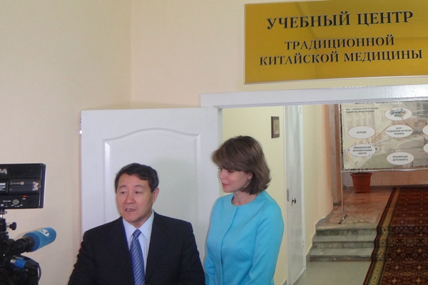 7月7日上午,杨宝峰校长带领中方代表团为萨拉托夫中俄医科大学联盟中医诊疗中心揭牌,并在揭牌仪式上致辞,同时接受俄罗斯多家媒体采访。他表示,中俄医科大学联盟将全力支持俄罗斯中医中药在俄罗斯发展,传播中国医学文化,推进中俄友好,加强中俄合作,防控两国重大疾病,造福两国人民。