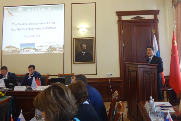 在开幕式上,杨宝峰校长作为中俄医科大学联盟中方主席,代表中俄医科联盟院校致辞,并在大会上做了大会报告,介绍了中国教育改革与发展,同时总结了中俄医科大学联盟近年工作并部署2018年工作计划,受到与会者的赞扬。会后,杨宝峰校长接受了俄罗斯国家及当地多家媒体的采访。5-6日,俄罗斯国家1号电视台转播了大会实况,同时也转播了杨宝峰院士的大会发言。在俄罗斯引起了很大反响,进一步加强了中俄友谊。