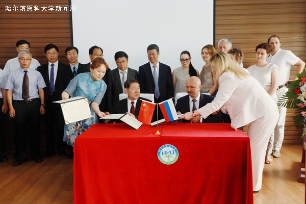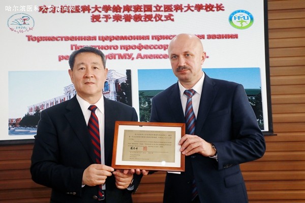 协议签署后,孙殿军主任主持仪式,杨宝峰校长授予阿列克谢英科校长为ac米兰官网中文网站医科大学荣誉教授称号。
