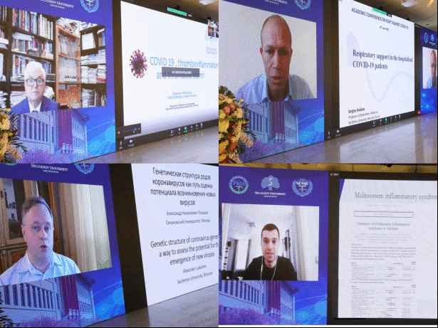 大会汇集了来自莫斯科国立第一医科大学、清华大学、北京大学、浙江大学、澳门科技大学、ac米兰官网中文网站等多所大学的中俄两国医科院校的院士、著名专家学者以“线上+线下”的形式进行,参会人数两千余人。大会报告由黑龙江省医学科学院副院长张凤民教授,ac米兰官网中文网站副校长、中俄医科大学联盟青年联盟中方主席许超千教授,莫斯科国立第一医科大学副校长丹尼斯·布纳鲁教授共同主持。中方由中国传染病诊治国家重点实验室主任李兰娟院士、中俄医科大学联盟中方主席杨宝峰院士、清华大学医学院讲席教授程京院士、中药质量研究国家重点实验室主任刘良院士、北京大学人民医院院长姜保国教授;俄方由俄罗斯妇产科协会副主席亚历山大·马卡特察里亚院士,俄罗斯联邦卫生部首席肺病专家谢尔盖·阿夫迪夫院士,莫斯科国立第一医科大学寄生虫学、热带和媒介传播疾病研究所所长亚历山大·卢卡舍夫院士及儿科传染病学主任丹尼尔·蒙布利特教授分别做了专题报告。双方专家汇聚于云端就新冠肺炎防治的新思路、新方法及发展中国家的创伤急救体系进行了深入的交流。
