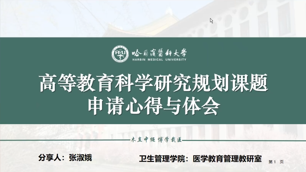 首先,高评中心马星对学校教学研究课题的类别和基本情况进行了介绍,高评中心主任姜宏佺重点对中国高等教育学会课题进行了分析和讲解。在讲座中,梁立波教授结合自身申报课题的感受,从教学研究课题如何破题、选题技巧、撰写规范等方面分享了经验。她强调,申报书是课题申报的“敲门砖”,每一个环节都要精心打磨,力求做到逻辑清晰、论证充分、表述准确。张淑娥老师从课题指南入手,从研究背景与意义的阐述、国内外研究现状的分析、研究内容的设定、研究方法的选择、研究计划的安排等方面,进行了全面且细致的讲解。