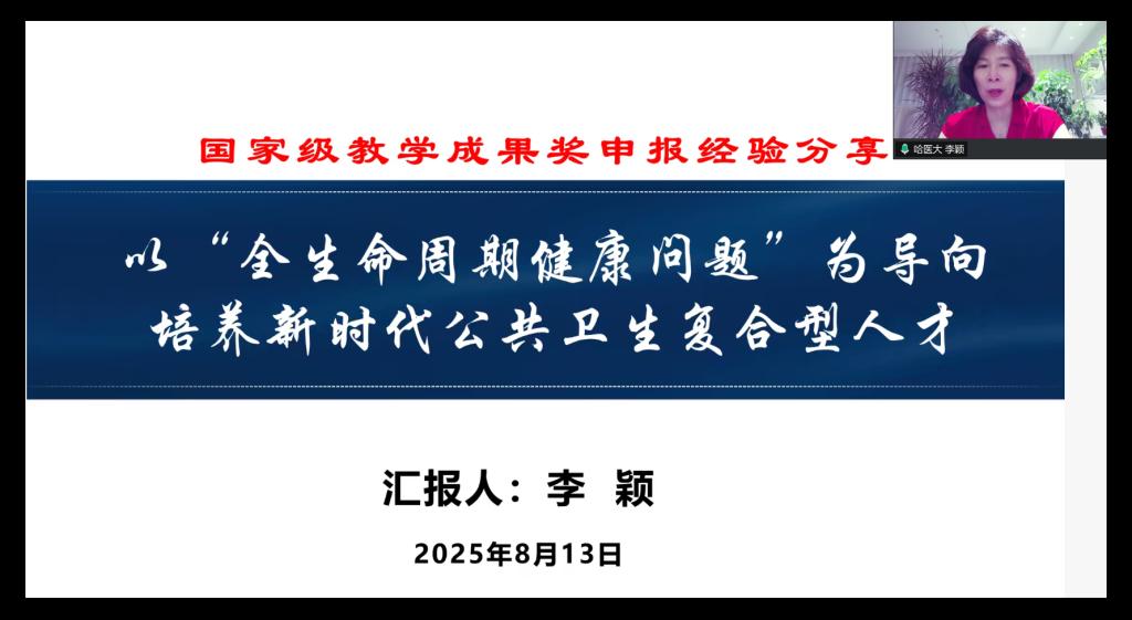 李颖教授是国务院特殊津贴专家、国家级百千万人才工程和国家有突出贡献中青年专家,在教学科研领域成绩斐然。讲座中,她结合自身丰富经验,从教学成果奖申报逻辑、“全生命周期健康问题”导向下的人才培养实践,到成果凝练与申报材料打磨等关键环节,进行了系统且深入的讲解。