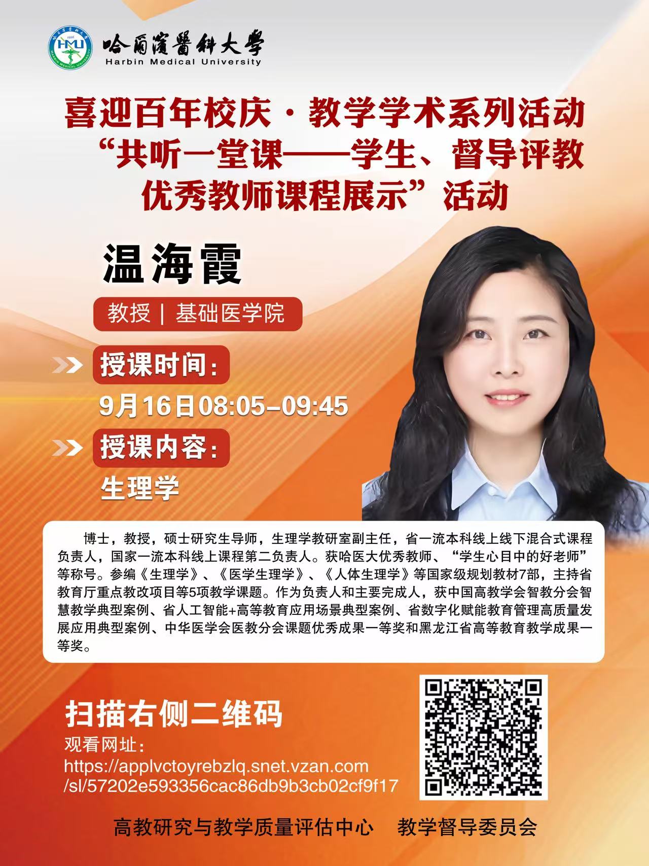 第一期为9月16日星期二0102节,基础医学院温海霞老师授课直播。