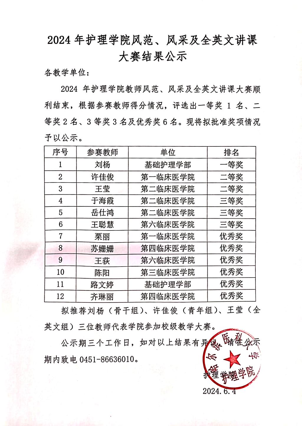 2024年护理学院风范、风采及全英文讲课大赛结果公示