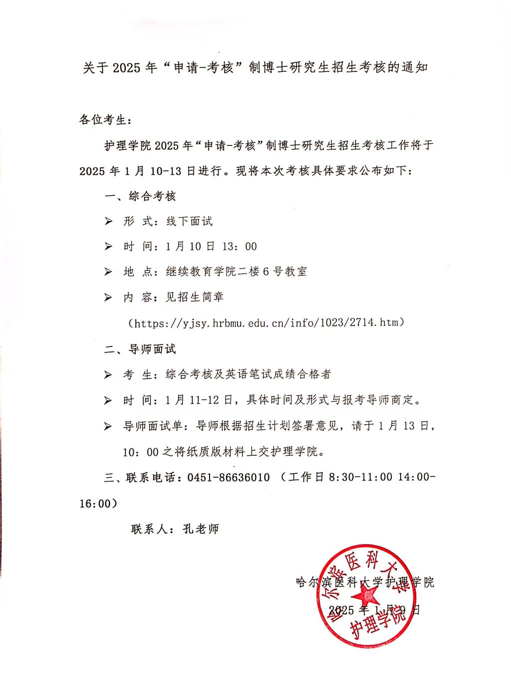 关于2025年“申请-考核”制博士研究生招生考核的通知
