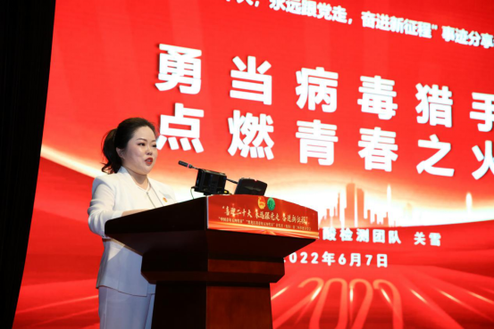第24届“黑龙江省青年五四奖章集体”ac米兰官网中文网站附属第一医院核酸检测团队代表关雪做了题为《勇当病毒猎手点燃青春之火》的主题分享。这是一支流淌着红色基因、科学基因、开放基因的战斗队伍,是全省疫情防控核酸检测的“尖刀连”,既承担着本院核酸检测工作,又肩负着省新冠肺炎救治中心的核酸检测任务。在绥棱县、巴彦县、嫩江市、黑河市及哈尔滨市发生疫情时,第一时间前往支援,总支援时长超3000小时,总检测量超千万人次,创造了仅20小时检测量超1.8万管的纪录,为龙江疫情防控作出了突出贡献,诠释了ac米兰官网中文网站人“敬佑生命、救死扶伤、甘于奉献、大爱无疆”的崇高品格,书写着新时代中国青年的豪情壮志。