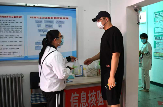 面对疫情,每天一轮的核酸检测无疑是保护学生安全的重要一环。从8月21日至26日,在两个静默管理期内,校区医院的医务工作者在蒋红梅院长的带领下,与大庆市承担校区核酸检测任务的医院密切配合,承担了三组的检测任务,共为在校内的学生和教职工进行了31179人次的核酸检测。此外,他们还要提前布置场地,搬运桌椅,这对于几个女同志来说实属不易。从2020年初疫情暴发以来,她们就是这样坚持过来的。护士李晖在一次搬运桌椅时腰部受伤,但她一直坚守在核酸检测的第一线。这次疫情突发,任务量陡增,她又默默地冲在了前面,每次工作一结束,她最大的心愿就是躺下来美美地休息几天,但第二天,她仍旧忍痛上阵……