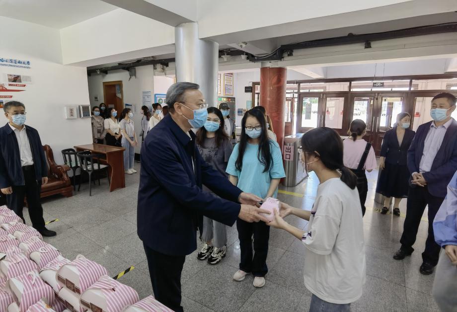 学校党委副书记袁重胜、副校长赵光、许超千、高彦辉、党委常委、宣传部部长东梅、党委办公室、后勤管理处、研究生院、学生处、各学院辅导员等相关部门人员陪同。