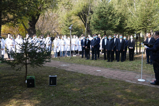 仪式上,张学、秦志忠、赵光、周钦共同为遗体志愿捐献者纪念石揭幕,全体师生在纪念石前鞠躬、献花,表达敬意。