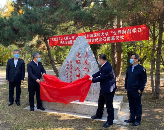 10月15日,学校举行“大爱无言,光照人间”——“世界解剖学日”纪念活动暨遗体志愿捐献者纪念石揭幕仪式。校长张学,黑龙江省红十字会党组书记秦志忠,副校长赵光、周钦等相关领导出席活动。仪式由基础医学院党委书记金焰主持,基础医学院师生代表参加仪式。
