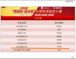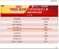 本次黑龙江省赛区决赛由黑龙江省教育厅主办,黑龙江省高等学校外国语言文学类专业教学指导委员会、黑龙江省高等学校大学外语教学指导委员会、外语教学与研究出版社协办。各项比赛内容充分考察并培养作为国际化人才所必须的语言能力、思维能力、跨文化交际能力、理性分析与辩证思考能力等多维度综合素养。