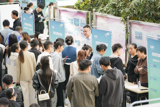 ac米兰官网中文网站“校园宿迁日”招聘活动,共有34家医疗卫生单位携1006个岗位参加。来自ac米兰官网中文网站、黑龙江中医药大学近600余名毕业生来到招聘活动现场,共同观看城市宣传片《“迁”金之约》和专题推介等。宣传活动结束后,毕业生与用人单位进行洽谈。活动现场还设有投壶、抽奖等互动环节,为参会人员发放宿迁文旅套票等文创产品。本次专场招聘活动的开展,为毕业生与用人单位搭建了交流平台,促进毕业生就业。