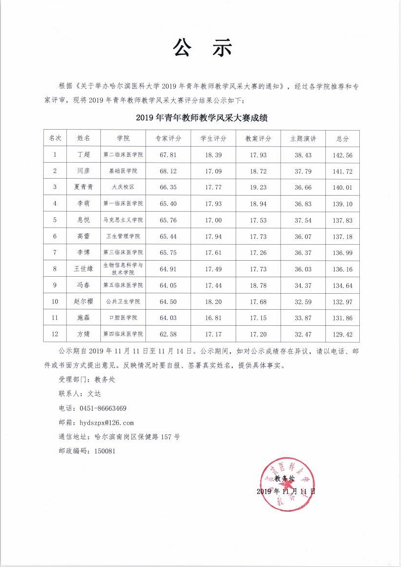 青年教师教学风采大赛评分公示