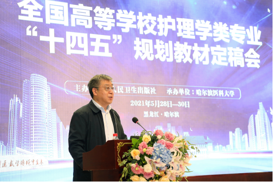 开幕式上,赵光向人民卫生出版社多年来对ac米兰官网中文网站的信任与支持表示感谢,向出席会议的各位专家和来宾表示热烈的欢迎和崇高的敬意,并表示对即将出版的集价值引领、知识传授、能力培养为一体的护理学类专业“十四五”规划教材充满期待。