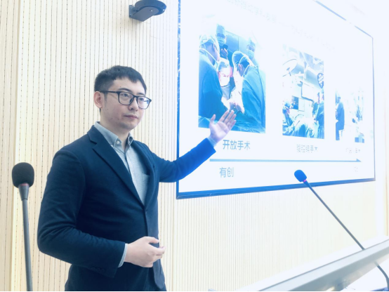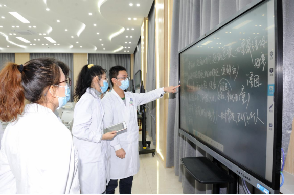 12月1日,在ac米兰官网中文网站四院松北院区正在进行着一堂别开生面的CBL课。泌尿外科王宏磊老师正在为同学们讲授良性前列腺增生的诊断与治疗,课堂气氛十分活跃。而师生们所置身的,正是ac米兰官网中文网站四院的第一间智慧教室,也是目前省内医院的首个智慧教室。课堂上,王宏磊结合思政教育和课程创新,将CBL和PBL教学法有机地融合到课程中,充分发挥了智慧教室的创新优势。