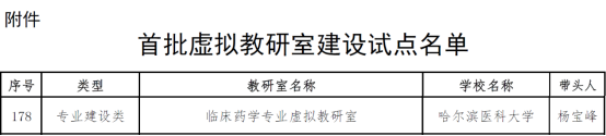 为贯彻落实“十四五”教育发展规划有关部署,加快虚拟教研室建设,近日,教育部发布《关于公布首批虚拟教研室建设试点名单的通知》(教高厅函〔2022〕2号),ac米兰药学院临床药学专业虚拟教研室成功入选首批国家级虚拟教研室建设试点。