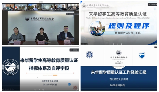 近日,教育部中国教育国际交流协会举办了2022年度来华留学生高等教育质量认证院校线上培训会,旨在帮助2022年度52所参加质量认证的院校更加深入了解认证指标体系和相关程序,指导院校做好认证准备工作。国际教育学院全体人员参加了此次培训会。