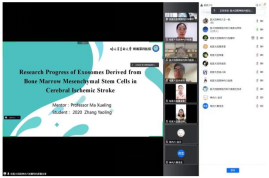 2020级硕士研究生张耀玲分享题为《Research Progress of Exosomes Derived from Bone Marrow Mesenchymal Stem Cells in Cerebral Ischemic Stroke》的文献抄读,大家热烈讨论相关知识点以及如何应用于课题组动物实验中。
