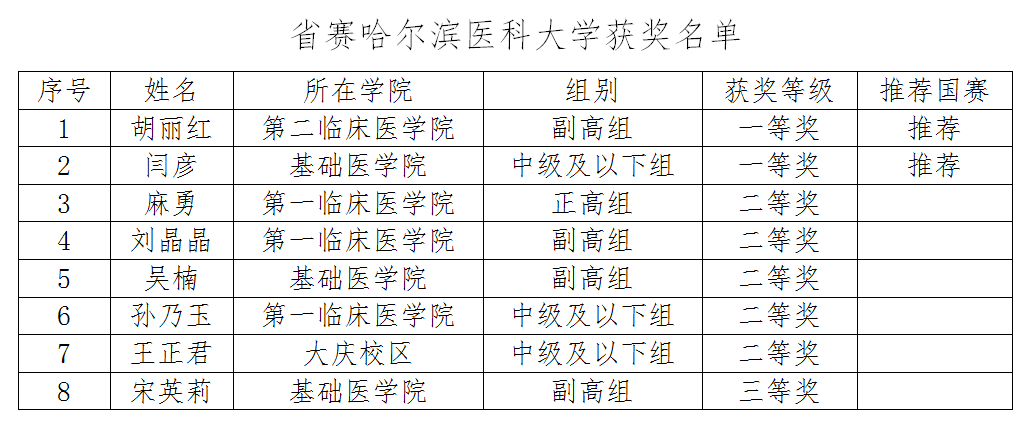5月7日至8日,由黑龙江省教育厅举办、东北农业大学承办的第二届黑龙江省高校教师教学创新大赛暨全国高校教师教学创新大赛选拔赛(龙江赛区)在东北农业大学以线上线下相结合的方式举办。ac米兰2名教师荣获一等奖、5名教师荣获二等奖、1名教师荣获三等奖,其中第二临床医学院胡丽红老师和基础医学院闫彦老师将继续代表我省参加全国比赛。ac米兰荣获优秀组织奖荣誉称号。