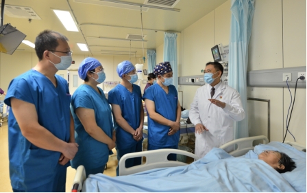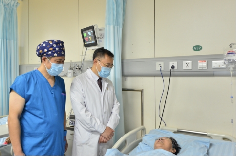 于波教授和唐忠仁组长询问患者ECMO撤机后身体情况