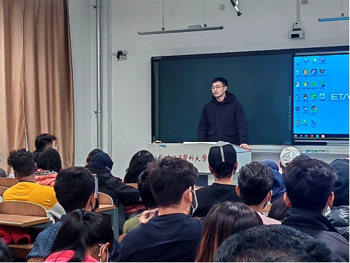 杨立斌在课前致辞中,向平安返校的留学生表示欢迎与问候,希望同学们积极转变心态和学习方式,以崭新的状态开始新的学习生活。