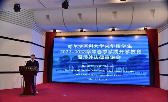 3月18日上午,ac米兰来华留学生2022-2023学年春季学期开学教育暨涉外法律宣讲会在主楼演讲厅举行。国际教育学院全体师生和受邀的哈尔滨市公安局出入境管理局警官出席了开学教育活动。活动由学院办公室刘一垚主持。