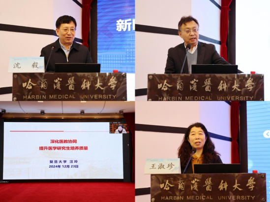 哈尔滨工业大学副校长沈毅、同济大学医学院院长郑加麟、复旦大学克卿书院院长汪玲、中山大学中山医学院副院长王淑珍,分别就人才培养体系建设、数智化赋能胜任力导向医学人才培养、提升医学研究生培养质量、医学教育教学研究等内容作交流与分享。