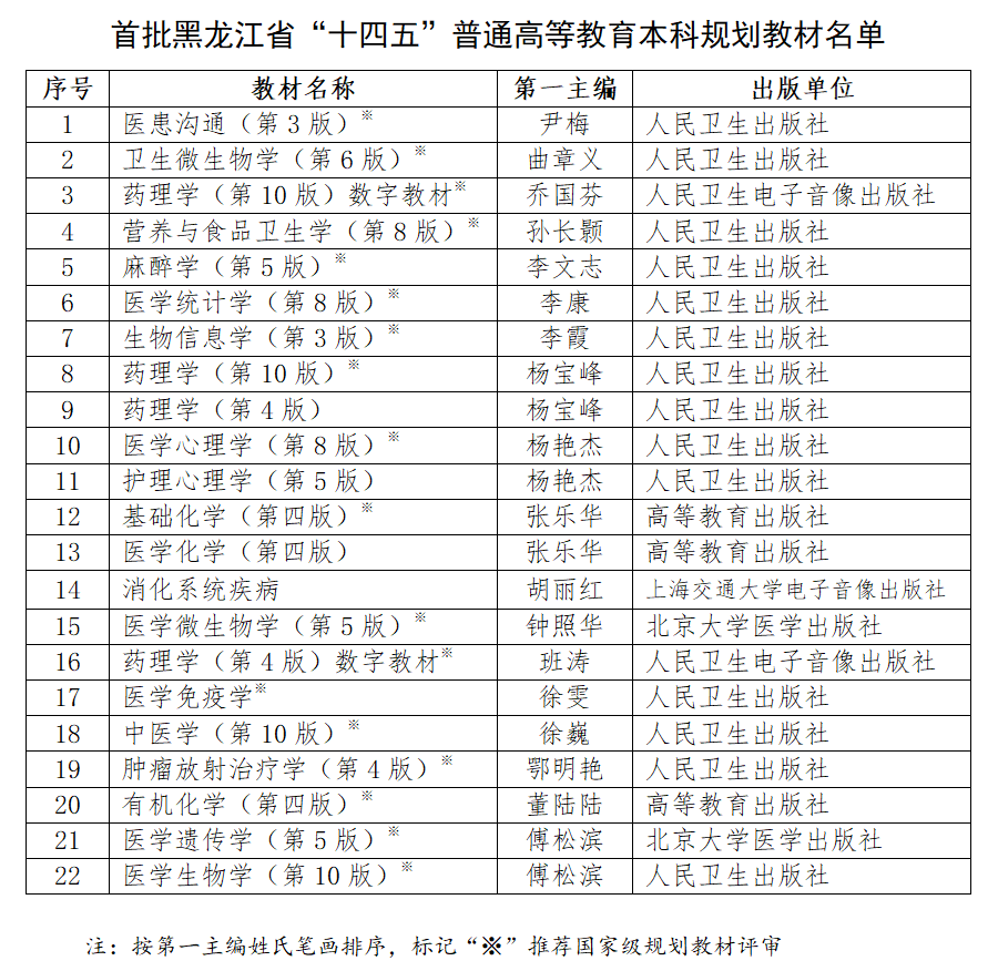近日,黑龙江省教育厅公布首批黑龙江省“十四五”普通高等教育本科规划教材名单,ac米兰共有22部教材入选,其中18部教材被推荐申报“十四五”普通高等教育本科国家级规划教材。