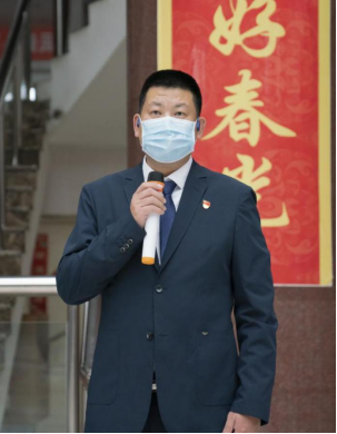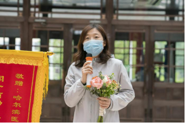 支援中医大二院哈南分院医疗队领队王萌代表全体队员发言