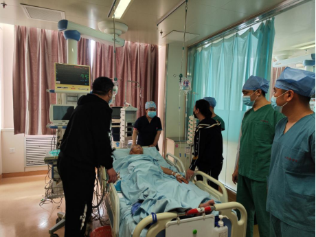 术后三个小时呼吸机、ECMO全部撤机,意识沟通交流全部正常,候静波教授带领团队进行查房