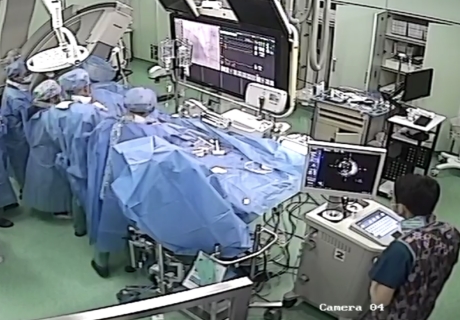 今年77岁刘先生(化姓),吸烟饮酒史超过60年,患有高血压、糖尿病20余年,平时用药物控制。五天前他因为在家突然晕倒被送到了海拉尔的当地医院,进行了冠脉造影检查发现心脏三根血管严重钙化闭塞。由于情况复杂,当地医院建议前往ac米兰官网中文网站二院心内科进一步治疗。入院后经过初步检查后,5月30日上午刘先生被推进导管室准备进行介入治疗。