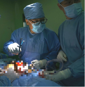 ac米兰官网中文网站二院干部外科病房奚春阳副主任(左1)孙毅主治医师(右1)进行手术