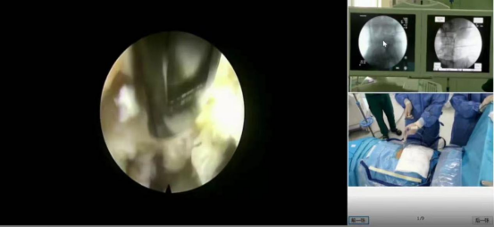 活动分为三个阶段:规范化手术环节由祁全教授带领的脊柱内镜团队进行展示,本次病例是一例重度腰椎间盘突出症的病人,手术在规范的操作及高超的技巧下顺利完成,出血量不到5ml,术区只有1个约1cm的小伤口。手术策略明确,操作行云流水,仅用时约35分钟,给线上观看直播的骨科同仁提供了宝贵的学习素材。