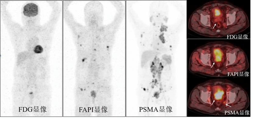 孙先生从“怀疑为头颈部恶性肿瘤”到最终确认为“前列腺癌”,从“焦虑不安”到“确诊后开始积极治疗”,依靠的是PET/CT分子探针的特异性显像:PET/CT是一种将PET和CT结合起来的检查方式,既能提供病灶功能以及代谢信息,又可以提供精确的解剖定位。FAPI(成纤维激活蛋白抑制剂)与FDG(氟代脱氧葡萄糖)同为广谱肿瘤显像剂:FDG是临床应用最为广泛的常规显像剂,可通过显示病变的糖代谢情况反映肿瘤病灶的活跃程度,但其在部分肿瘤中存在诊断敏感性及特异性不足等问题,无法完全满足临床诊疗需求;FAPI靶向性的结合肿瘤相关成纤维细胞上的成纤维细胞激活蛋白,可以从肿瘤生成机制的角度来判断病变性质,临床应用前景广阔,近年来受到了国内外医院的广泛关注。与FDG及FAPI不同,PSMA(前列腺特异性膜抗原)主要应用于前列腺肿瘤的显像,PSMA PET/CT是目前最敏感的前列腺癌影像学检查方法,不仅可以应用于前列腺癌的诊断,也可以应用于前列腺癌临床分期、疗效评估及治疗后生化复发病灶的定位诊断。