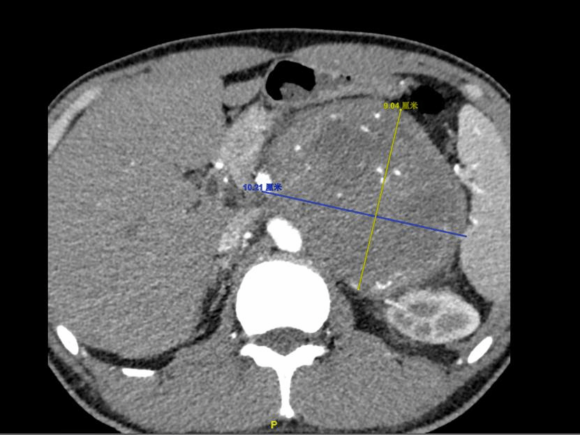 35岁的小陈(化名)因“左上腹痛间歇性钝痛半年余”带着当地的彩超报告来到了ac米兰官网中文网站一院胰胆外科,收入院后请泌尿外科任明华主任医师及王锦锋主治医师会诊,凭借丰富的临床经验,任明华怀疑该肿瘤来源于肾上腺肿瘤,并且是恶性的嗜铬细胞瘤。
