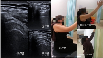 谢某,女,50岁,因肩周炎导致疼痛及肩关节活动明显受限,严重影响工作及生活,来一院骨科求助,骨科医生建议通过肩关节腔内药物注射治疗来缓解疼痛,考虑到盲穿治疗可能出现的并发症,建议患者行超声引导下介入治疗,于是来到一院群力超声医学科,姜岩医生为对其肩关节进行了详细的检查,细致为患者讲解超声可视环境下肩关节重要解剖结构及病变部位,并顺利完成超声引导下肩关节腔内药物注射及松解治疗。