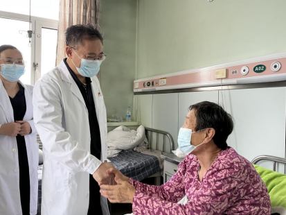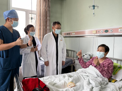 术后,于波教授带领团队查房,患者陈奶奶为医生竖起大拇指